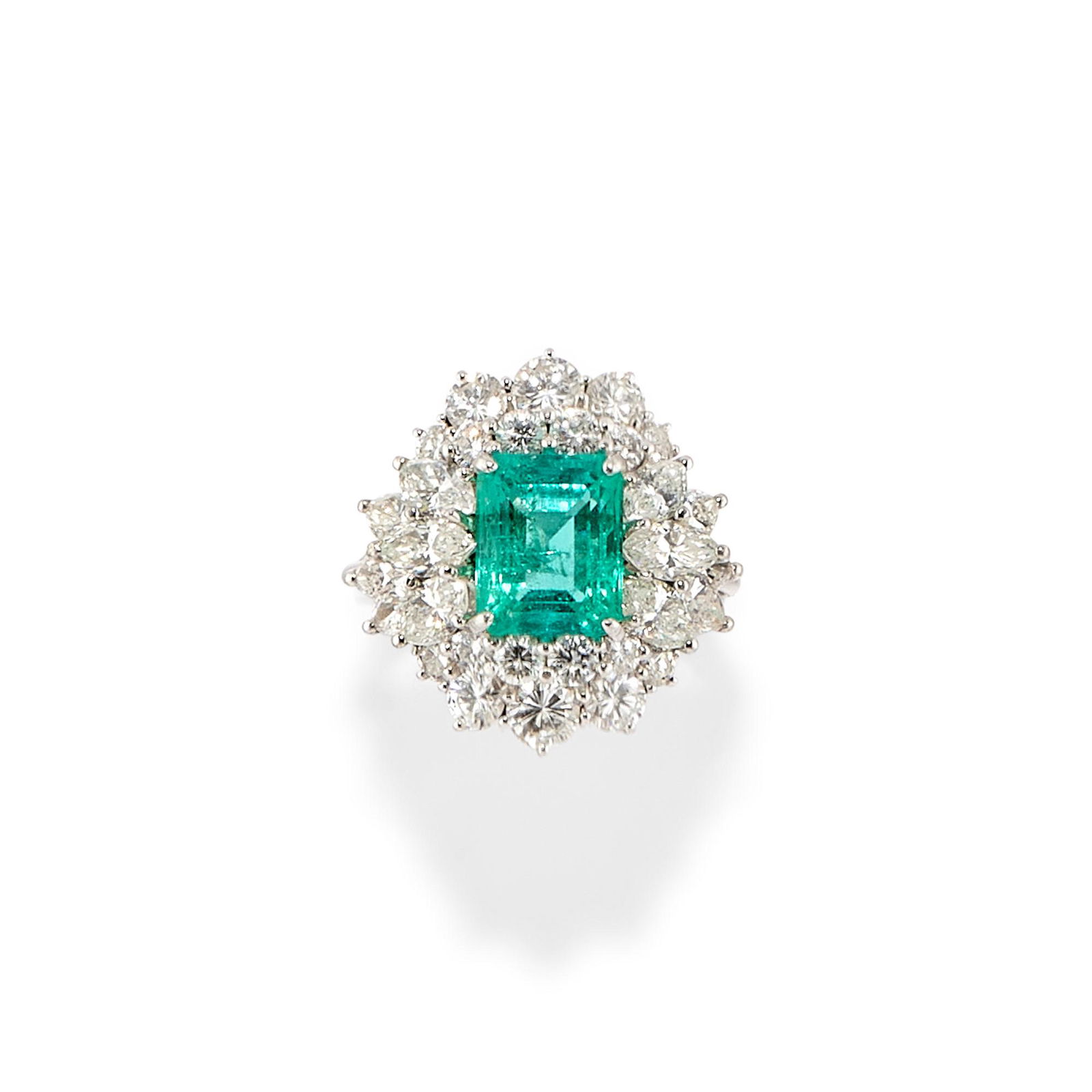 A 18k white gold, diamond and emerald ring
