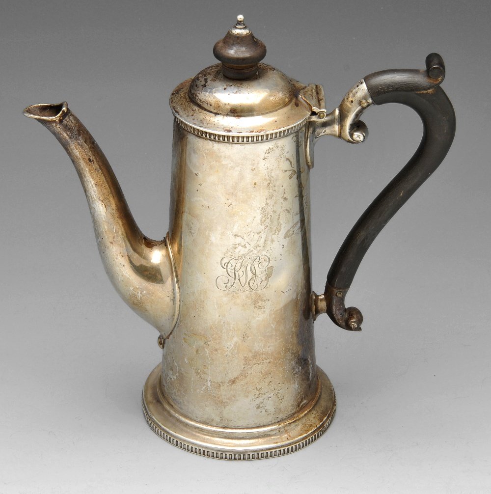 Silver Plate CREAMER International SilverMar 02, 2026Gerard Hofmann (1917-1965), French ceramicist, own workshop. Large teapot in unique ceramics.Gerard Hofmann (1917-1965), French ceramicist, own workshop. Coffee pot in unique ceramics.Royal Worcester Platinum LustreSterling Queen Anne Style Teapot, 19th CenturyMar 10, 2026Sterling "Connecticut Cup" coffeepot trophy, 19336 hrs LeftAntique Georgian English embossed sterling silver repousse floral coffee / tea pot, London, 1753,2 days LeftAn Elizabeth II sterling silver coffee potMar 03, 2026George III Sterling Coffeepot, Thomas Whipham c 1746Feb 26, 2026George II English Silver Coffee Pot5 days LeftStief Colonial Williamsburg Pewter Tea Pot 30 Years Old4 days LeftENGLISH SILVER MFG TEAPOT5 days LeftEnglish Sterling Repousse Coffeepot, London, 1900Feb 26, 2026English Sterling Teapot, George Baskerville, 1799Feb 26, 2026Cardeilhac .950 Silver Vermeil Tea Pot with Ebony Handle Cattails1 day LeftTurn of the Century German .830 Silver Teapot5 hrs Left