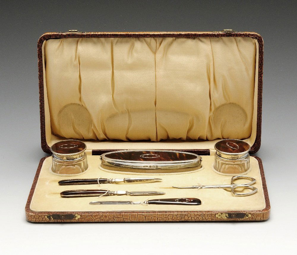 A 1920's silver and tortoiseshell manicure set,