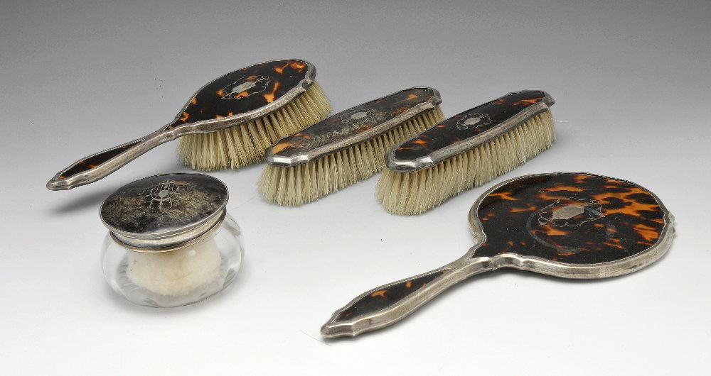 A 1920's silver & tortoiseshell matched dressing table