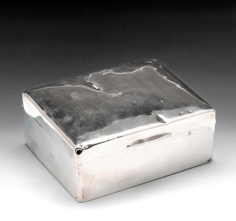 German Art Deco Sterling Silver& Mahogany Cigar Box by DunhillA SILVER CIGARETTE BOX. 282 grams overall. 8.5 cm square.4 days LeftAn Edwardian large silver two-handled cigar and cigarette box, fitted with lighter, cutter and a...A silver double tiered cigarette box Asprey & Co Ltd, London 1919A Chinese sterling Silver and Huanghuali Box marked "HENGFENG"22 hrs LeftDERBY AND HORSE RACING INTEREST: a good silver box D & J Wellby, London 1916A silver seal box writing desk companion Asprey & Co Ltd, London 1920England circa 1750 A George II unmarked silver table double snuff boxFeb 18, 2026A METAL GEM-SET (SYPTOR / V.C.A. METAL) SNUFF BOX OR CIGARETTE CASE, FRENCH, CIRCA 1925–1935Feb 15, 2026A SILVER TABLE BOXFeb 17, 2026Mexican Sterling Silver Humidor6 days LeftTiffany & Co. Makers Sterling Silver Cigarette Box21 hrs LeftAN EDWARDIAN SILVER GLOVE BOXFeb 17, 2026An Edwardian silver twin-compartment cigar box Stokes & Ireland Ltd, Chester 1905Art Deco 800 Silver Cigarette Case with Gilt InteriorFeb 21, 2026Poole Sterling Silver Cigarette/Cigar BoxMar 07, 2026