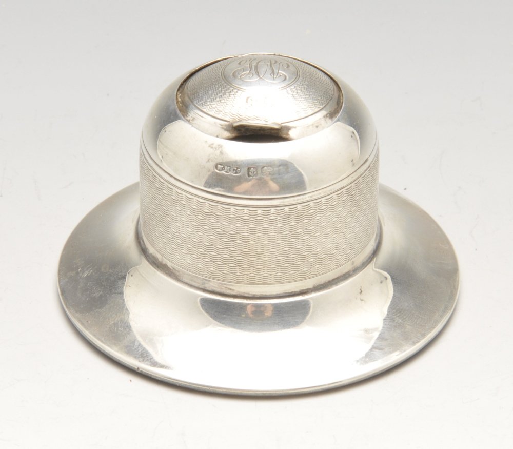 A 1920's silver mounted inkwell, having engine-turned