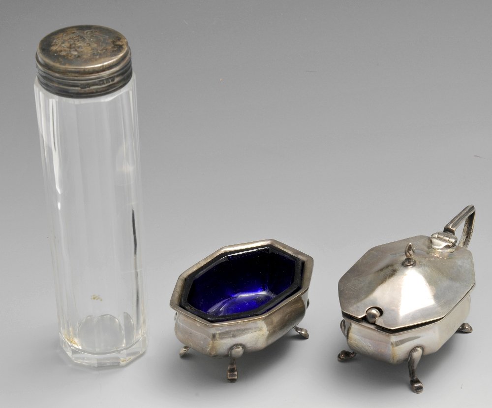 Lot of Cobalt Blue & Sterling Salt Cellars & ShakersFeb 16, 2026Art Deco Glass Perfume Bottles w/ Silver Mount LOT7 days LeftCollection of silver consisting of pepper and salt shakers, jugs, bell, bowl and statue of a boy,Feb 15, 2026Victorian Silver Mounted Glass Vessels, 2Mar 12, 2026George V Silver Condiment Set, Mark of William AitkenFeb 12, 2026Art Deco Cut Crystal Perfume Bottles, 3Feb 12, 2026Mappin & Webb Sterling Silver Open Salts, Pepper Casters And A Mustard Pot On .800 Silver Tray (919 hrs LeftA Group of Sterling Silver Table ArticlesFeb 15, 2026A CASED SILVER FIVE PIECE CRUET SETFeb 17, 2026A CASED SILVER SIX PIECE TAPERING HEXAGONAL CRUET SETFeb 17, 2026A GROUP OF FOUR SCENT FLASKS VARIOUS MAKERS, LATE 19TH/EARLY 20TH CENTURYFeb 19, 2026A CYLINDRICAL HAMMERED SILVER CASTERFeb 17, 2026Group of Silver Table Articles2 days LeftGroup of Silver AccessoriesFeb 12, 2026Group of Silver and Silver Plate Table Articles2 days LeftA SET OF THREE CONTINENTAL JEWELED AND ENAMELED GOLD-MOUNTED CUT GLASS COSMETIC CONTAINERS PROBABLYFeb 19, 2026
