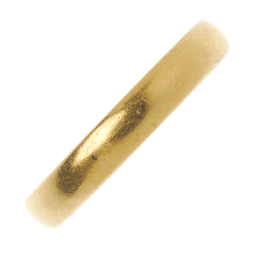 A 1920s 22ct gold D-shape band ring.