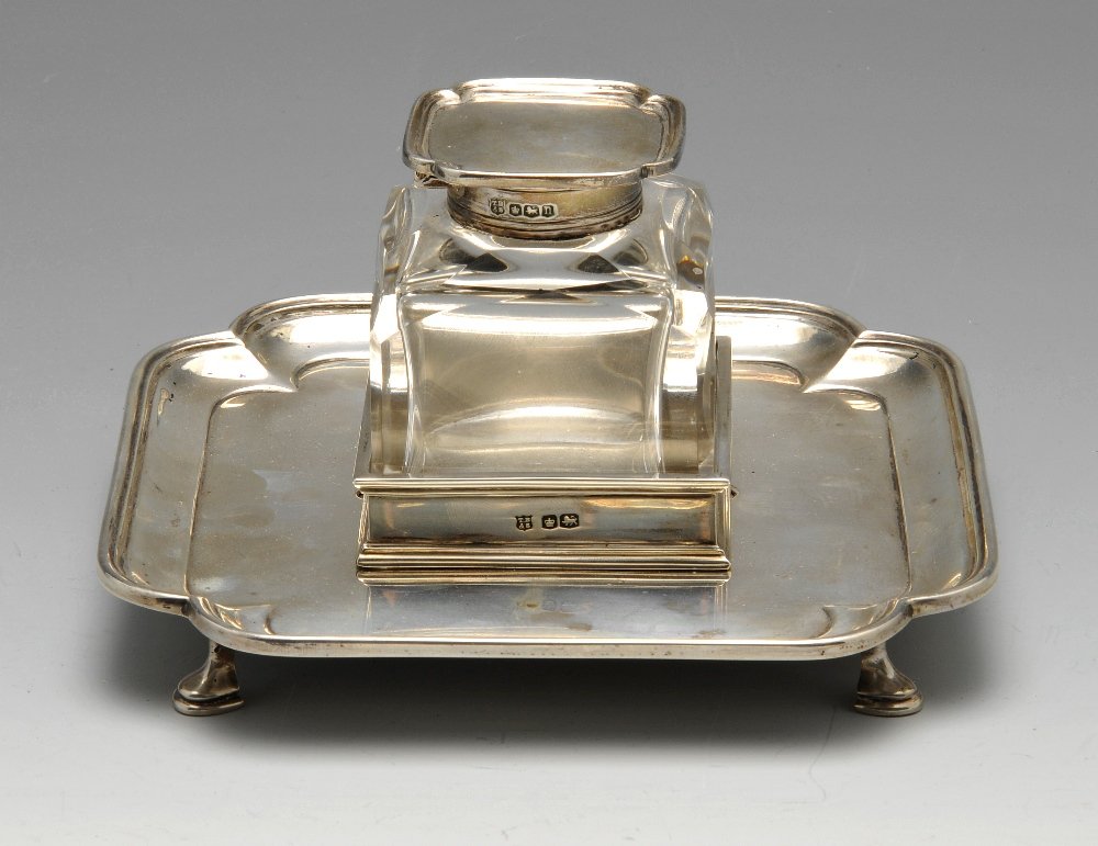 George V sterling silver inkstandFeb 18, 2026A Victorian silver inkstand Charles Stuart Harris, London 1894George III Sterling Silver and Cut Glass Inkstand2 days LeftA Victorian silver inkstand Charles Stuart Harris, London 1895Victorian silverplate inkstandFeb 19, 2026Two silver inkstands and other items (5)George III Sterling Silver Inkstand7 days Left1910s Traditional Sterling Silver Small Table Form BoxA SILVER SMOKING COMPENDIUMFeb 17, 2026Antique English Victorian Silver-Plated InkwellFeb 18, 2026A SILVER TWIN HANDLED BOWLFeb 17, 2026A SILVER WARMING DISHFeb 17, 2026A SILVER SHAPED SQUARE TRAYFeb 17, 2026A SILVER SHAPED SQUARE LETTER TRAYFeb 17, 2026TIFFANY & CO. STERLING DESK STAND WITH INKWELLSFeb 22, 2026A French silver bowl on stand with Minerva head first standard mark, with maker's mark on base