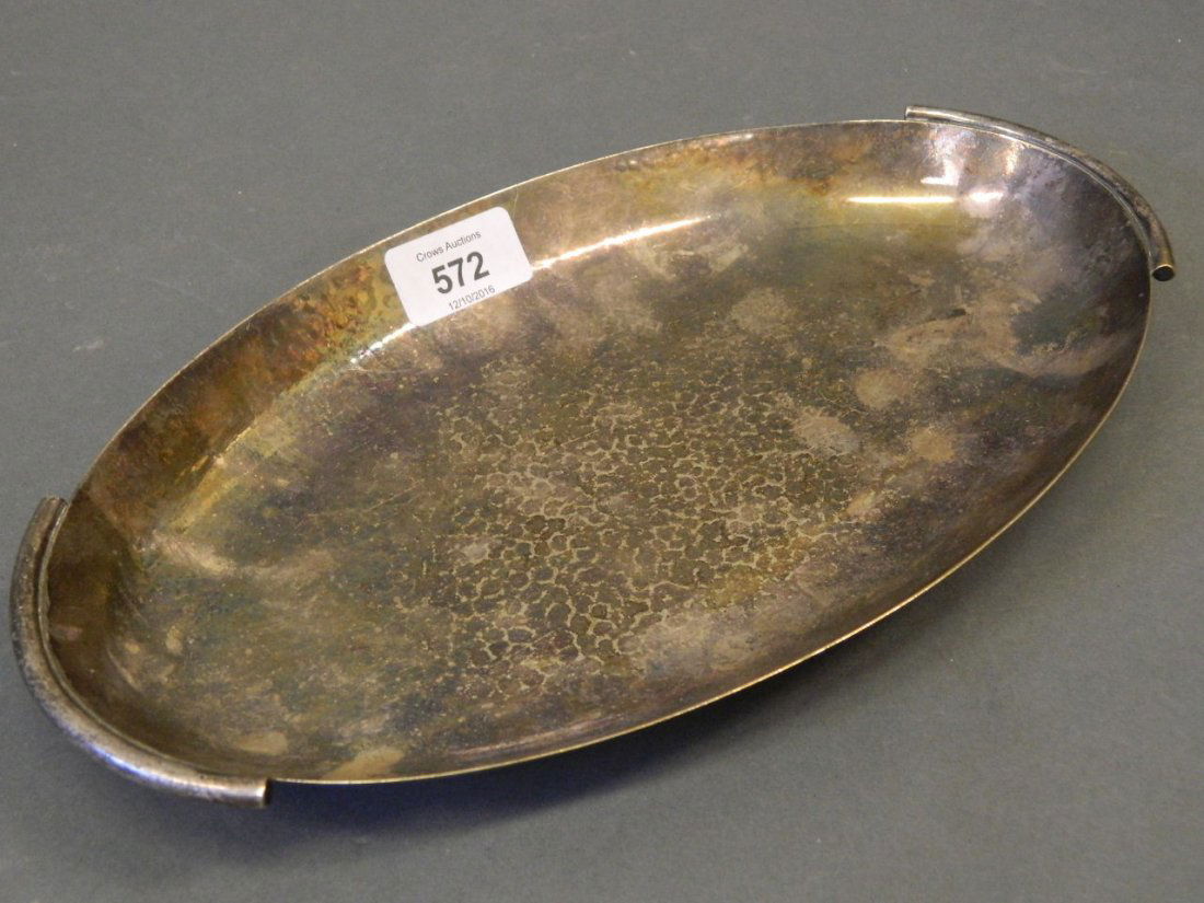 A 1930s Continental silver plated dish with hammered