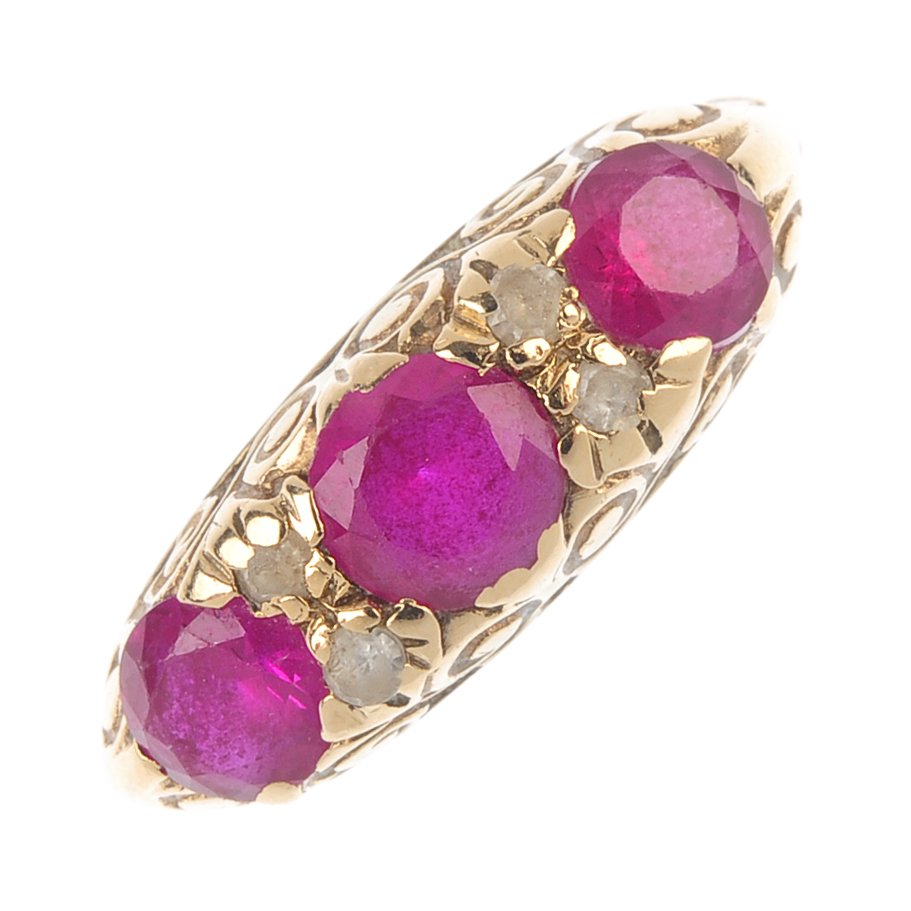 A 1960s 9ct gold synthetic ruby and paste ring. The
