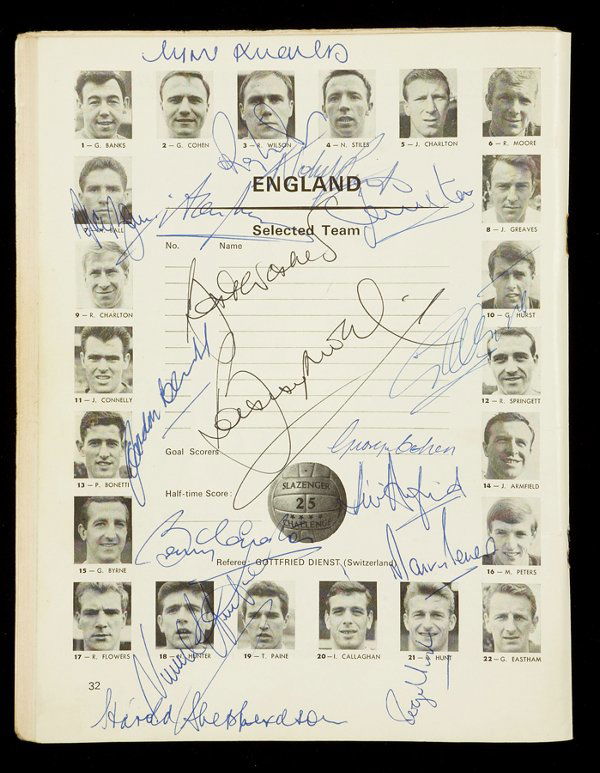A 1966 World Cup final programme fully-signed by t