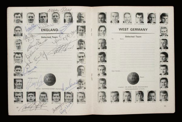 A 1966 World Cup final programme signed by 16 Engl