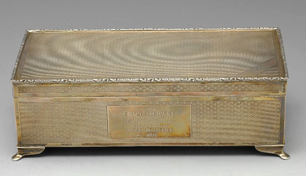German Sterling Silver Cigarette Case with a Sapphire StoneA METAL GEM-SET (SYPTOR / V.C.A. METAL) SNUFF BOX OR CIGARETTE CASE, FRENCH, CIRCA 1925–1935Feb 15, 2026Poole Sterling Silver Cigarette/Cigar BoxMar 07, 2026A George IV silver-gilt and gold mounted snuff box Alexander J Strachan, London 1824DERBY AND HORSE RACING INTEREST: a good silver box D & J Wellby, London 1916A Russian 84 Silver Cigarette Box3 days LeftGold British B&S Cigarette Case Over 162 GramsFeb 22, 2026Gucci Vintage Steel Multi-Functional Jewelry Cigar Box4 days LeftA SILVER SMOKER'S BOX AND COMPENDIUMFeb 17, 2026AN EDWARDIAN SILVER GLOVE BOXFeb 17, 2026A silver seal box writing desk companion Asprey & Co Ltd, London 1920A RUSSIAN SILVER AND NIELLO CIGARETTE BOXFeb 17, 2026THAI REPOUSSÉ STERLING SILVER HUMIDOR BOX 685 GRAMS5 days LeftENGLISH SILVER JEWELLERY BOX15 hrs LeftGold Metal Ornate Jewelry Box with Velvet InteriorFeb 12, 2026Mexican Sterling Silver HumidorFeb 12, 2026