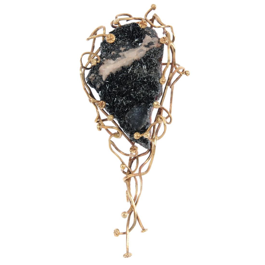 A 1970s 9ct gold gem-set pendant. The geode segment,