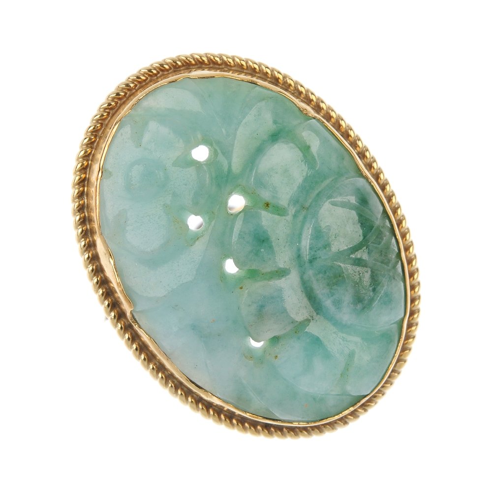 A 1970s 9ct gold treated jade ring.