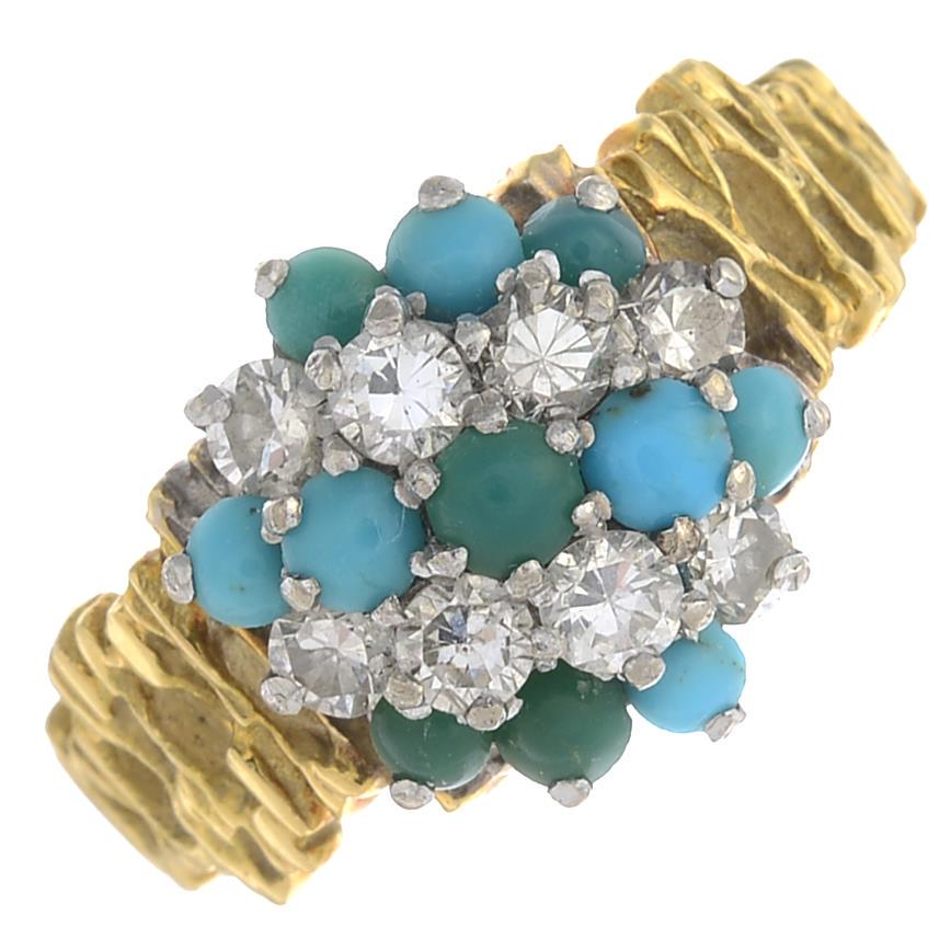 ANTIQUE TURQUOISE AND DIAMOND RING