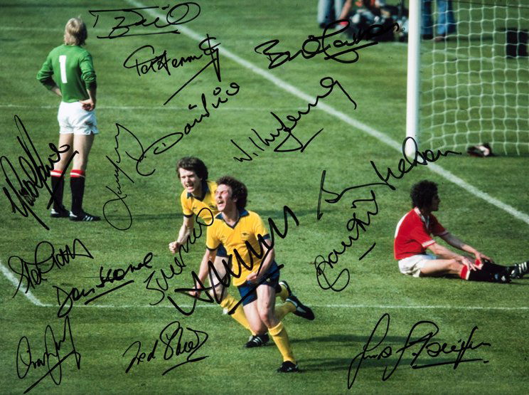 A 1979 F.A. Cup Final action colour photograph signed