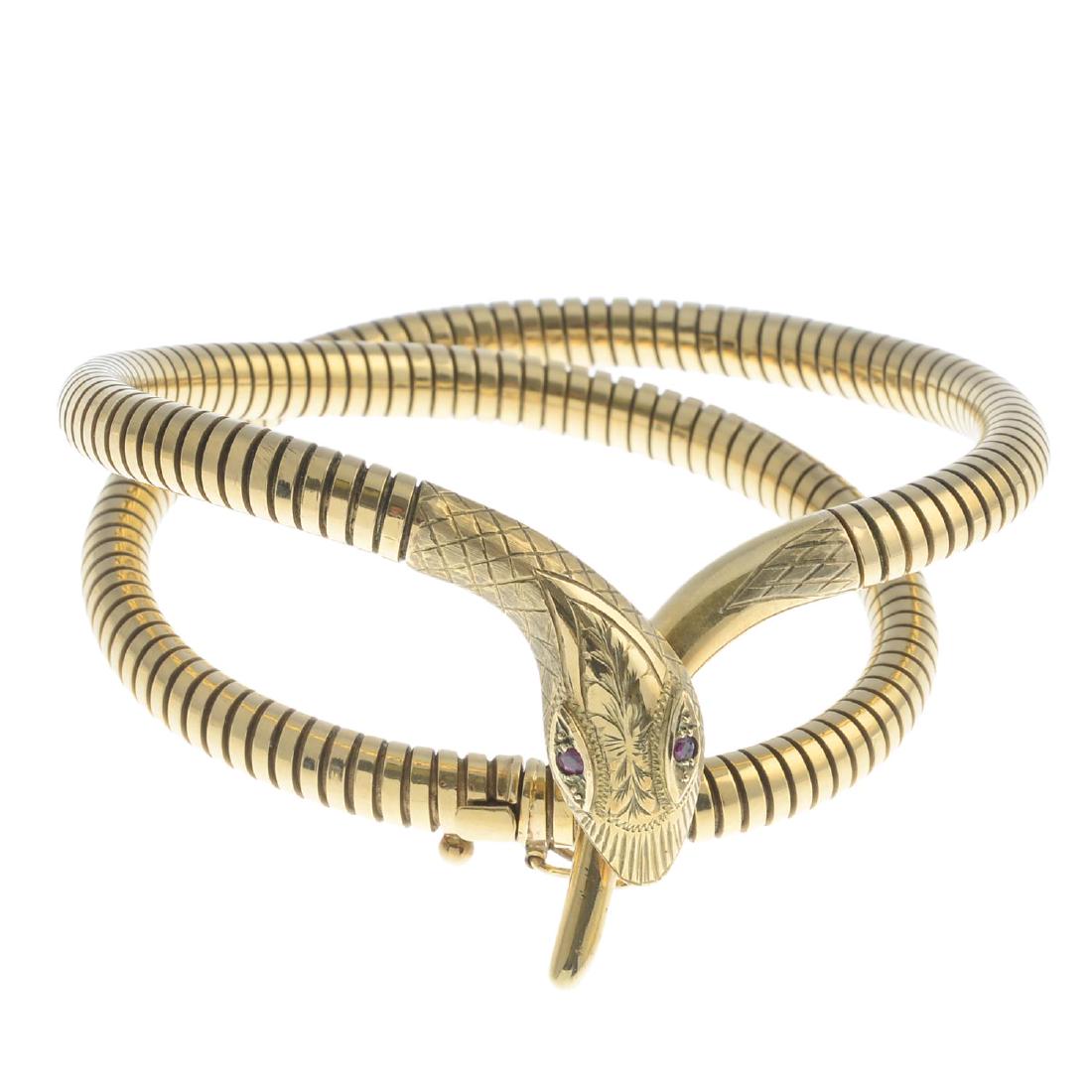 Estate 21k Gold Double Snake Head Bracelet with Ruby Emerald PearlsDiamond Depot4.3(10)$4,3004 days Left