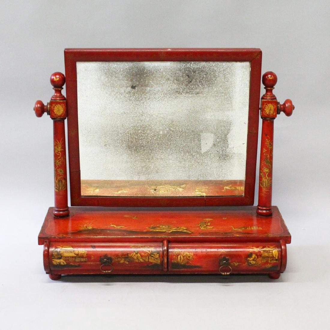 A 19th CENTURY LACQUER DRESSING MIRROR with red lacquer