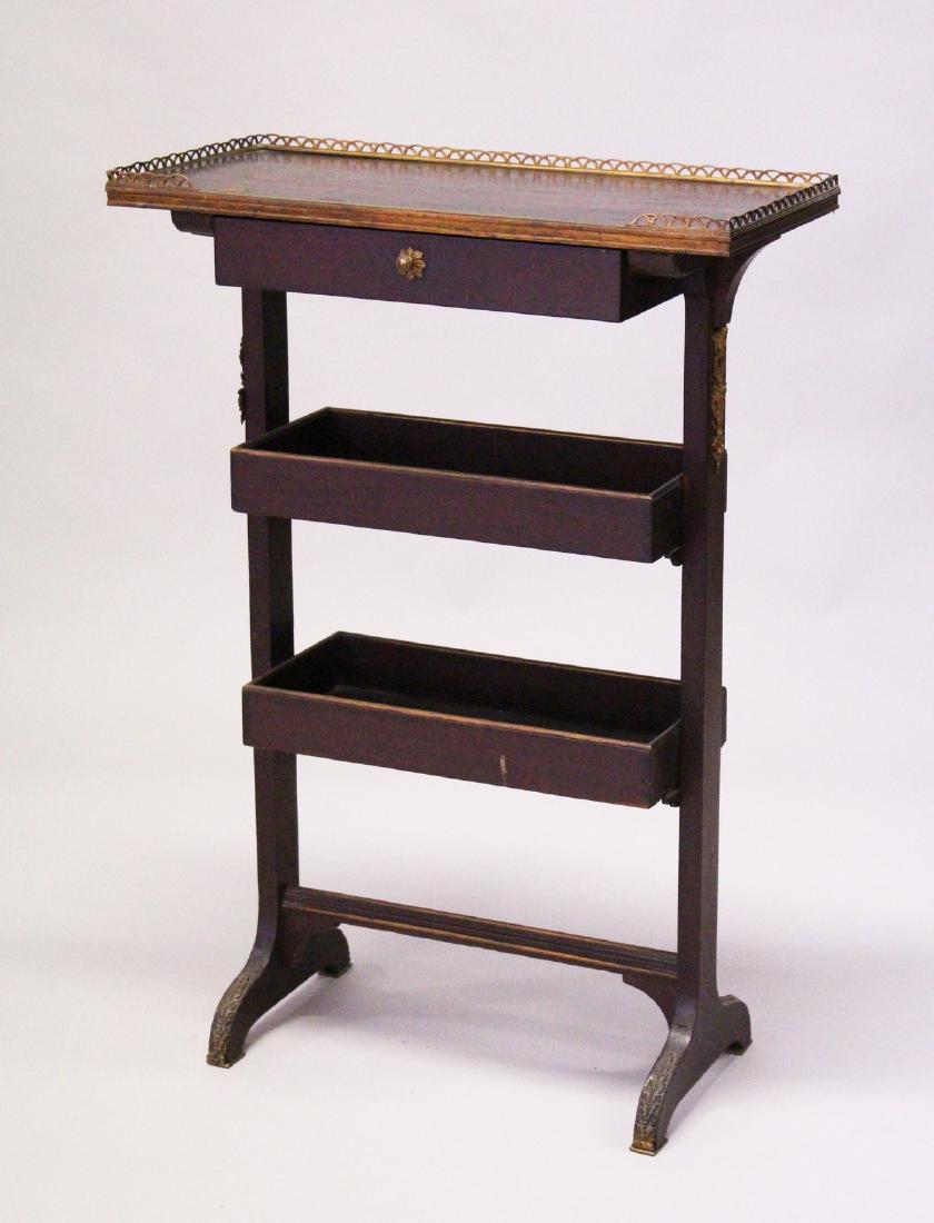 A 19TH CENTURY ROSEWOOD RECTANGULAR STAND, with brass
