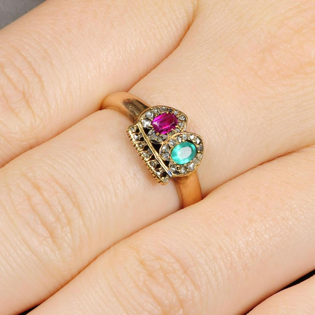 A 19th century ruby, emerald and rose-cut diamond