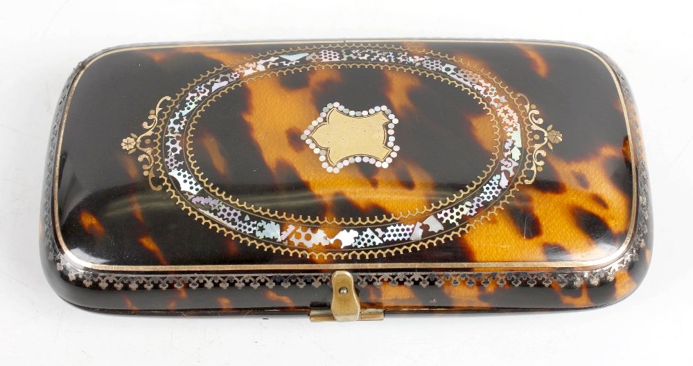 A 19th century tortoiseshell case of rectangular domed