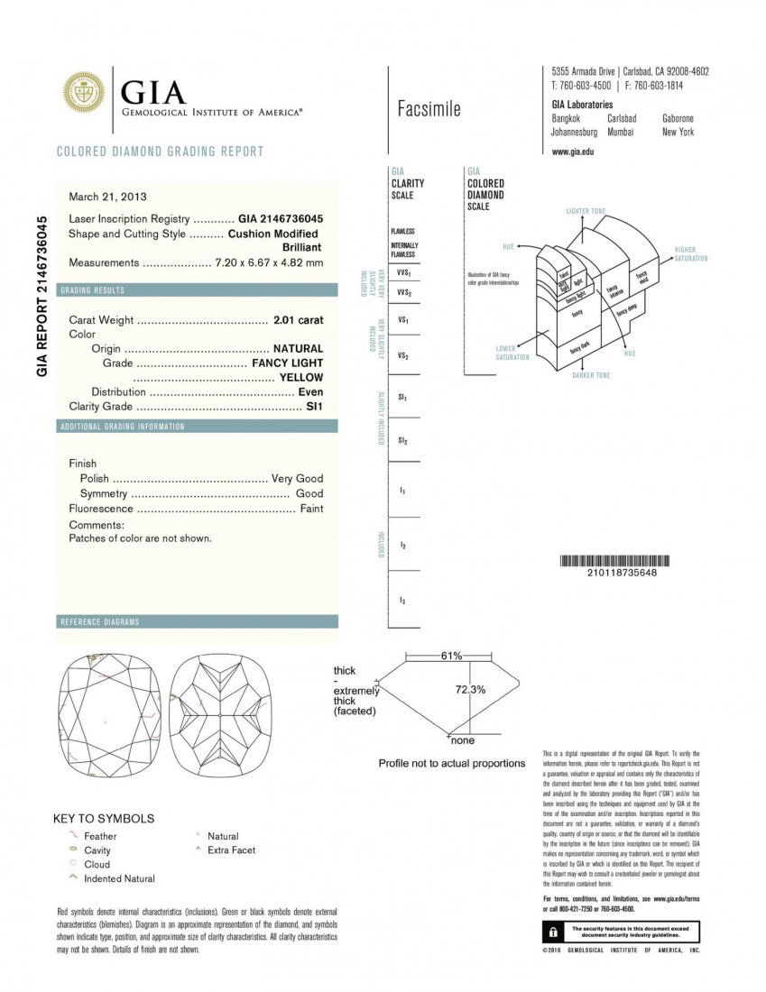 A 2.01CT FANCY LIGHT YELLOW CUSHION SHAPE CERTIFIED