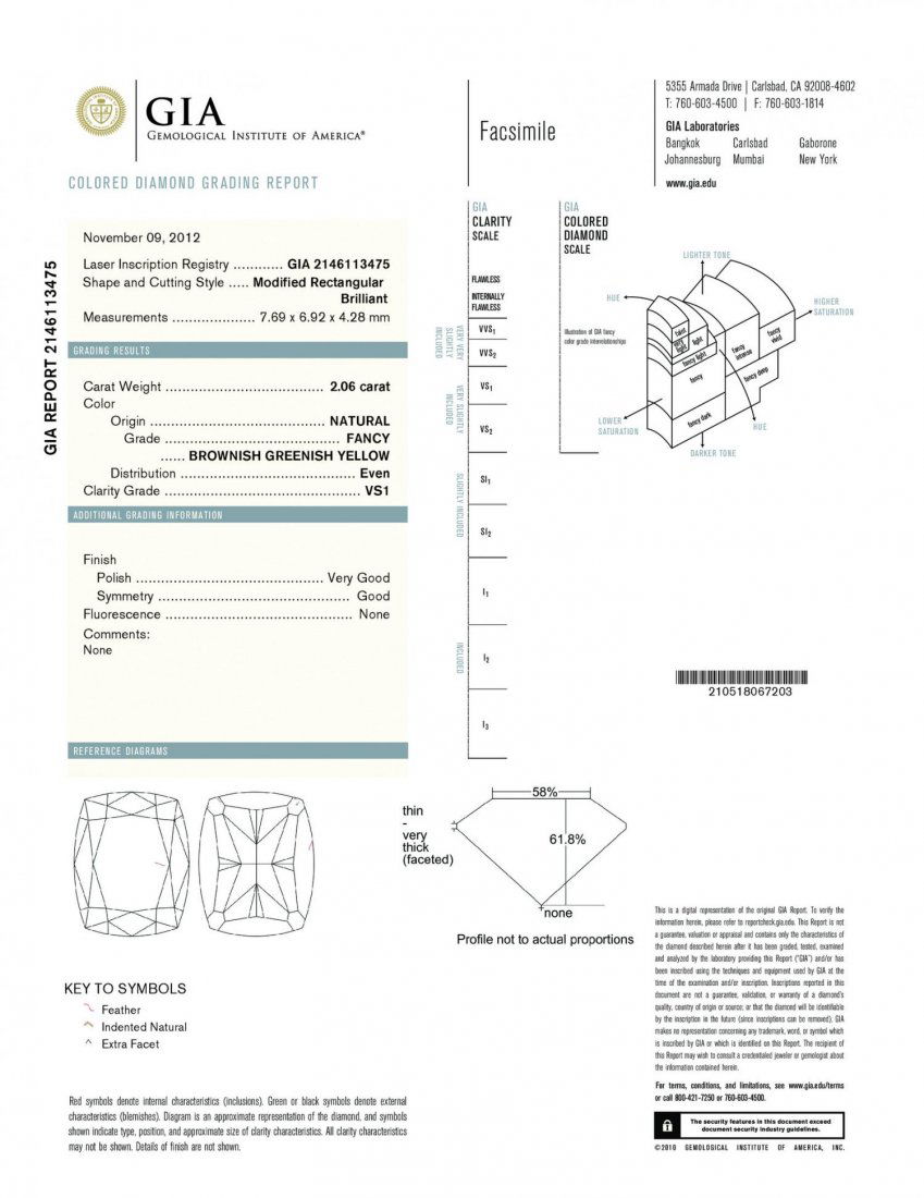 A 2.06CT FANCY BROWNISH GREENISH YELLOW RECTANGLE