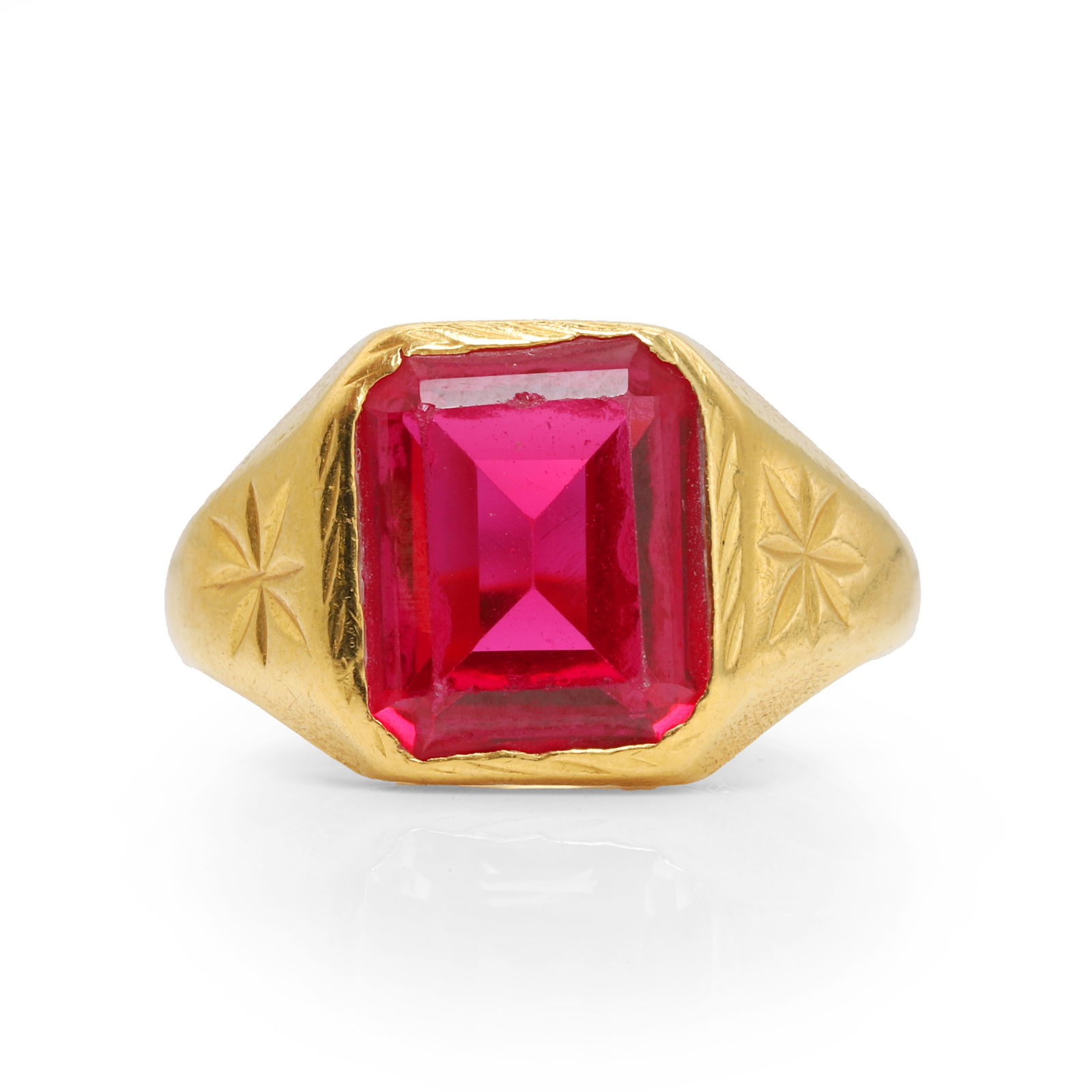 A 22ct Gold Synthetic Ruby Signet Ring,