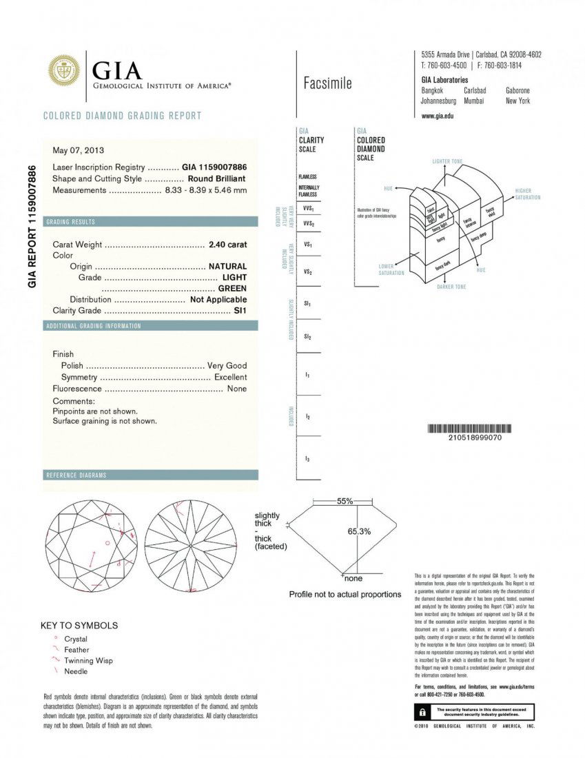 A 2.4ct Light Green Round Shape Certified Si1