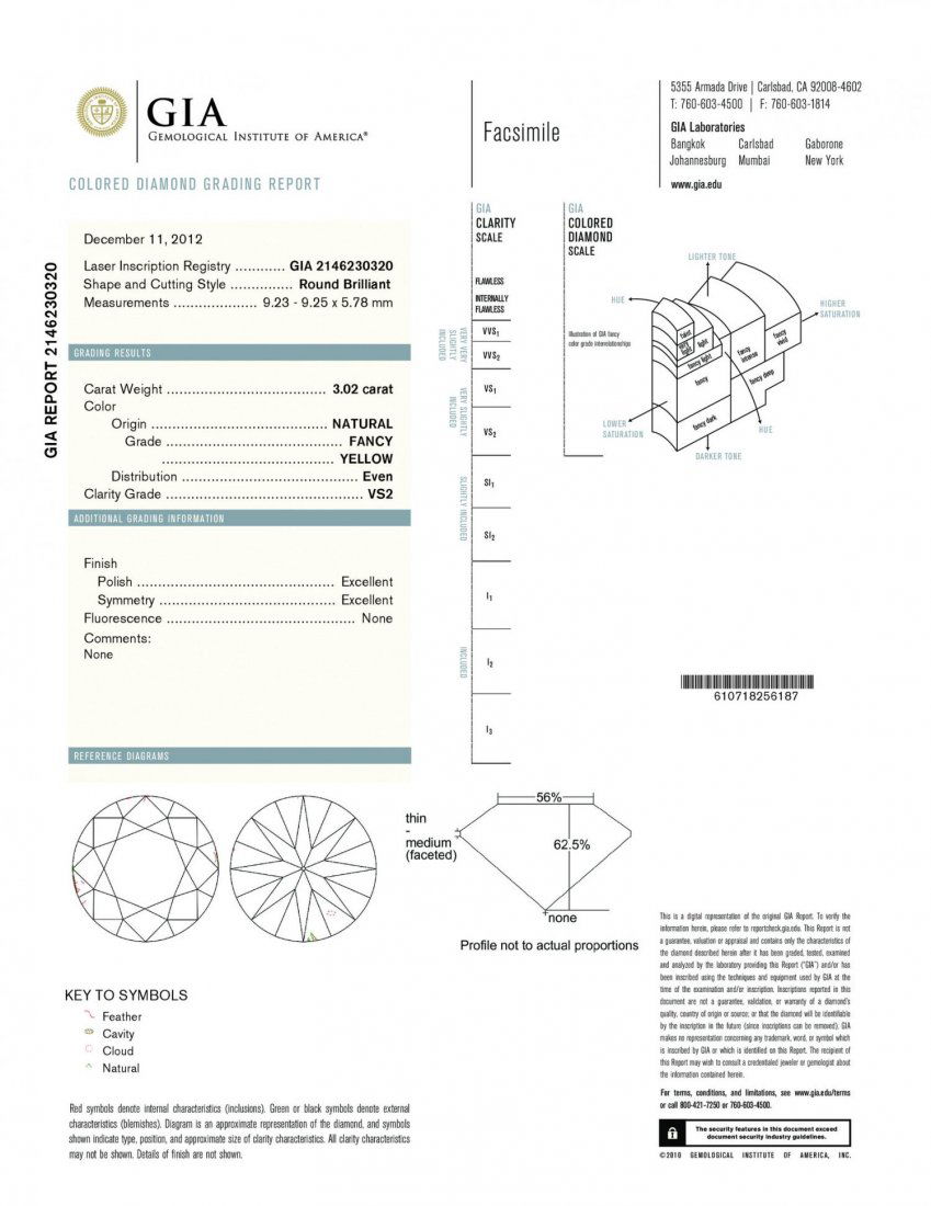 A 3.02CT FANCY YELLOW ROUND SHAPE CERTIFIED VS2