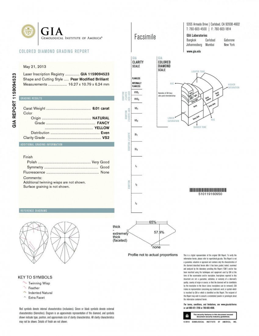 A 8.01CT FANCY YELLOW PEAR SHAPE CERTIFIED VS2