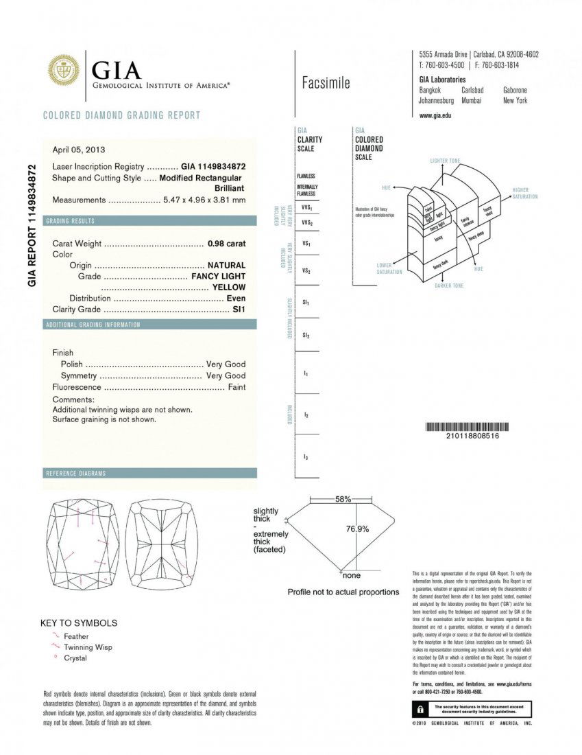 A .98CT FANCY LIGHT YELLOW RECTANGLE SHAPE CERTIFIED