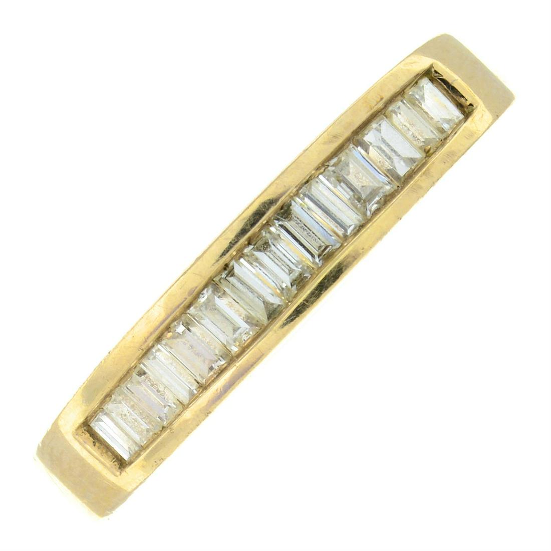 A 9ct gold baguette-cut diamond ring.