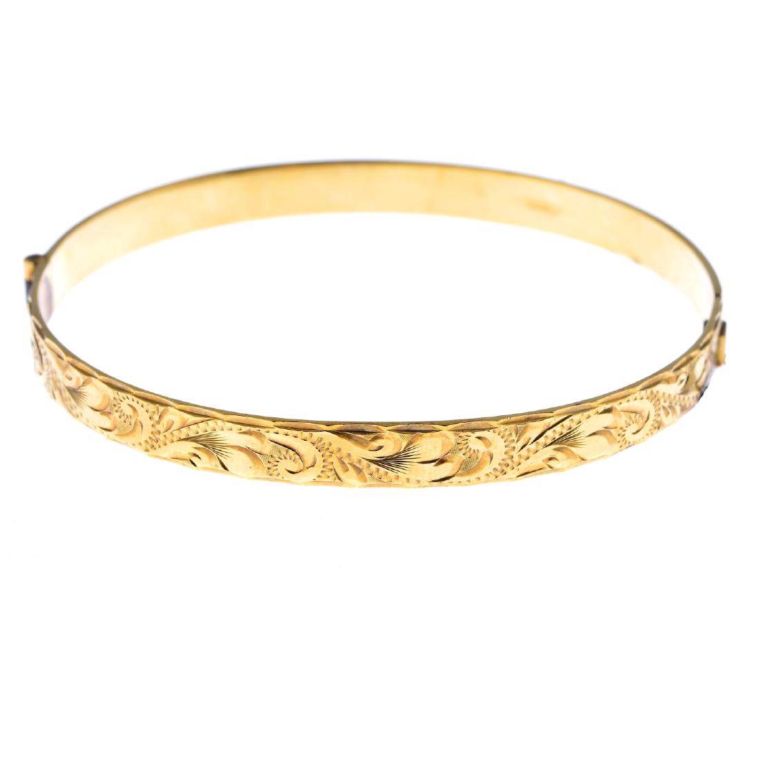 A 9ct Gold Bangle. Designed As An Scrolling Foliate