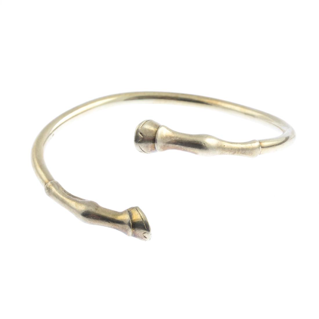 A 9ct gold bangle. The open cuff, with asymmetric