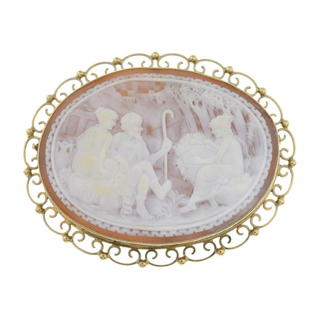 Figural Antiquity Scene Shell Cameo Brooch Pendant 9k Gold 3 detailed figuresCarnegie's Auction Gallery4.4(12)$150Feb 22, 2026