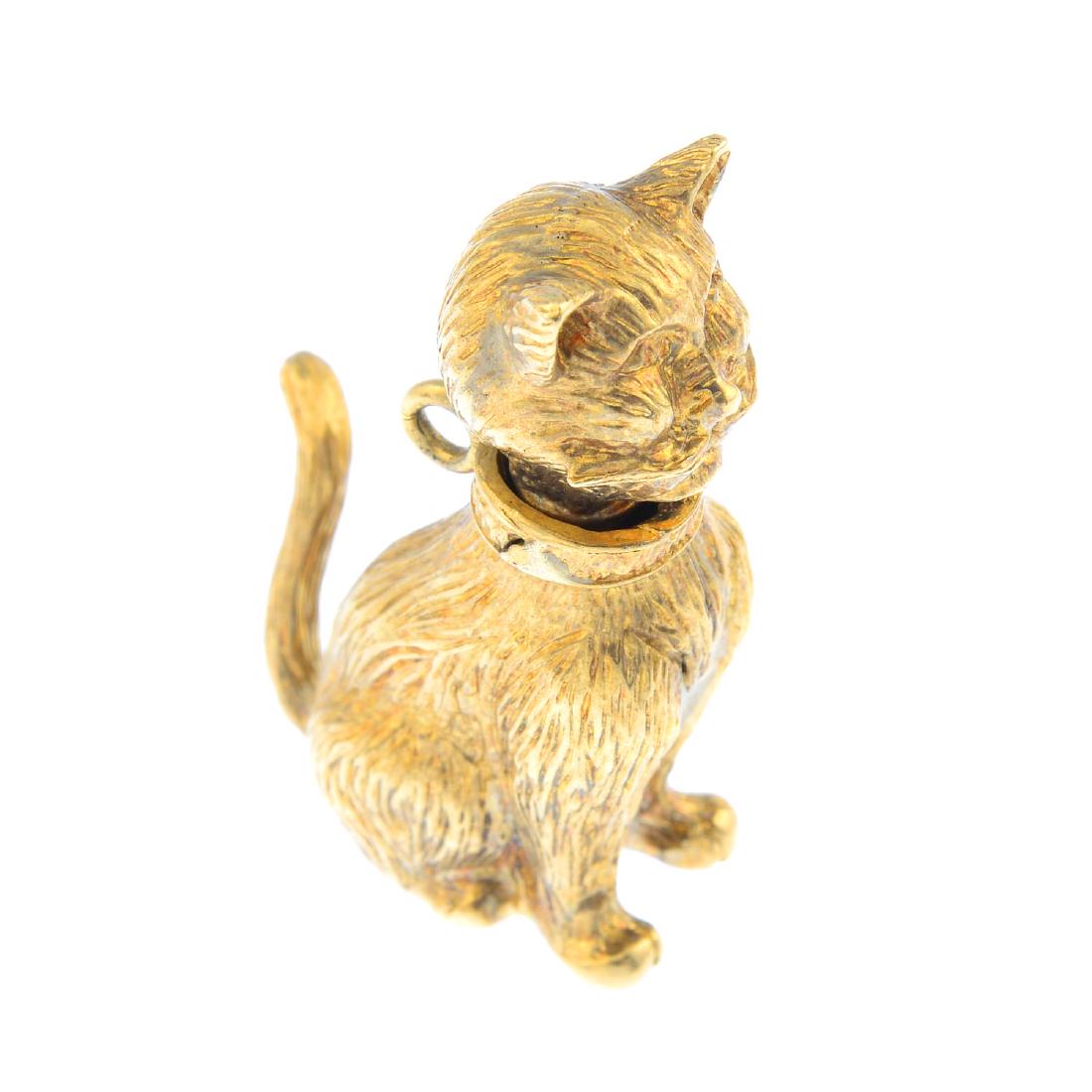 A 9ct gold charm. Designed as a sitting cat. with
