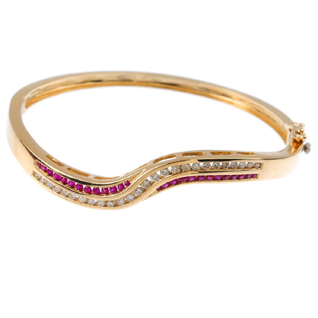 Ruby and Diamond 18k Yellow Gold Wavy Hinged Bangle Bracelet 1.75ctwDiamond Depot4.3(10)$4,3003 days Left