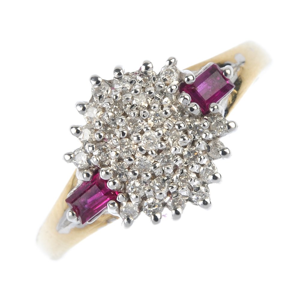 A 9ct gold diamond and ruby ring.