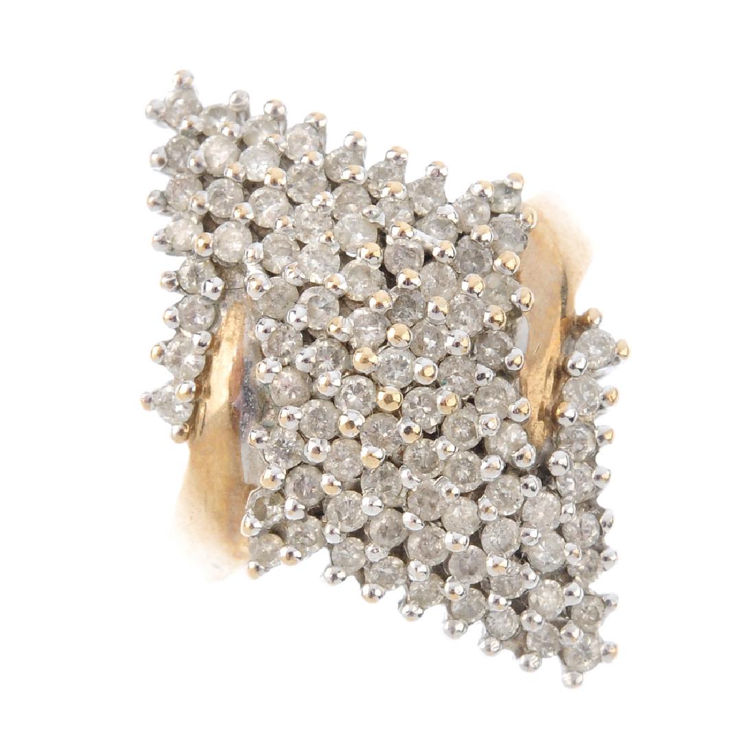 A 9ct gold diamond cluster ring. Designed as a pave-set