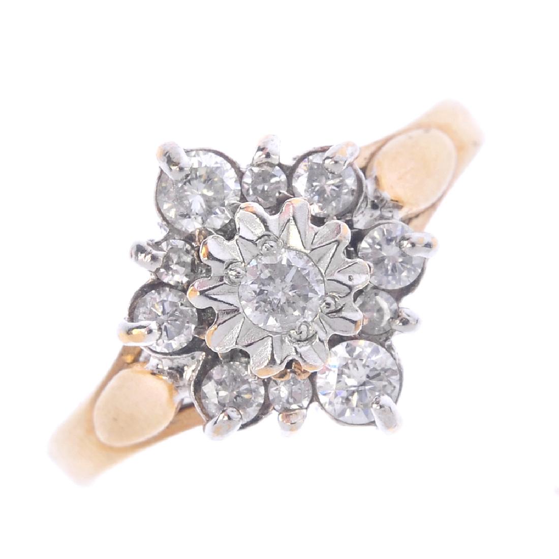 A 9ct gold diamond cluster ring. The illusion-set