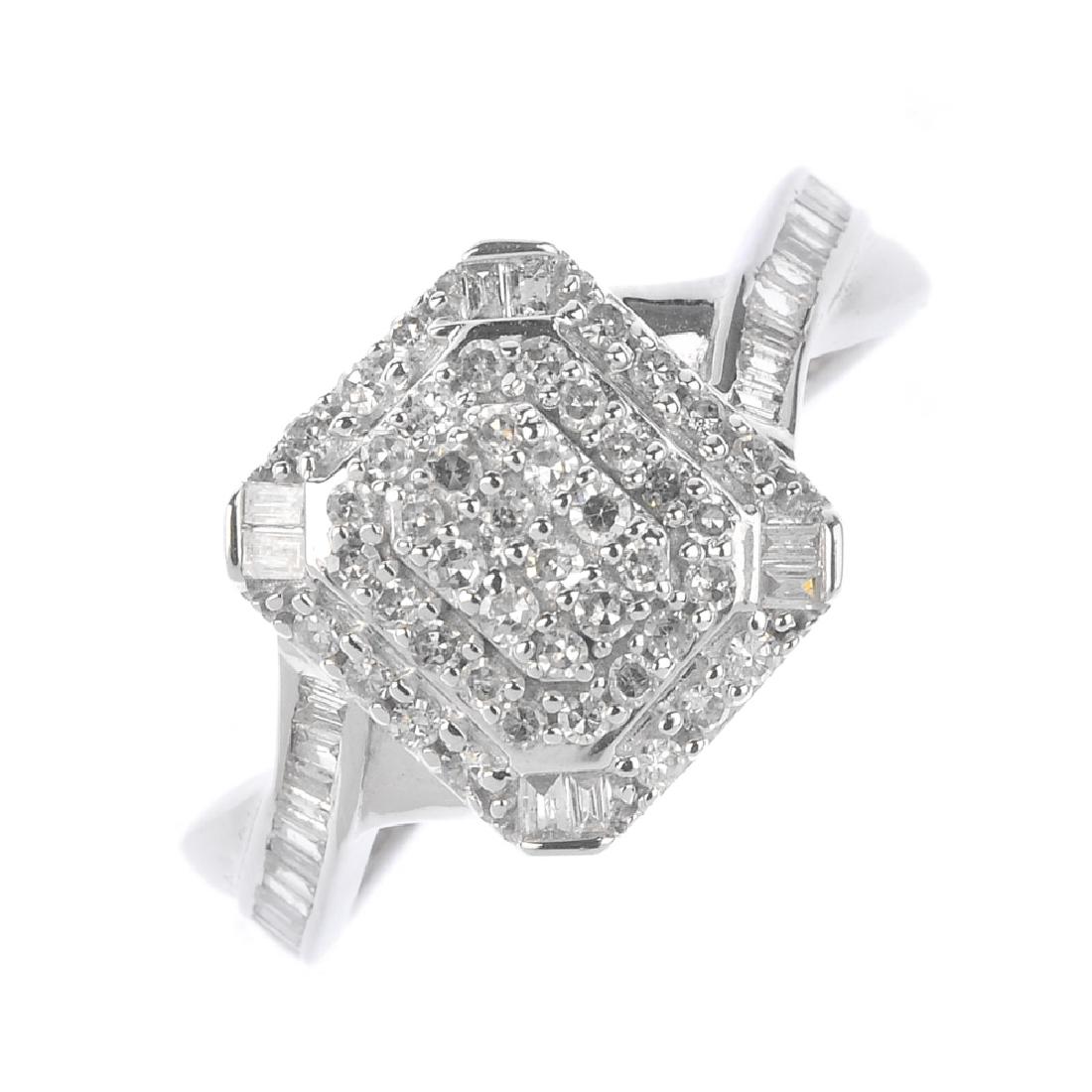 A 9ct gold diamond cluster ring. The rectangular-shape