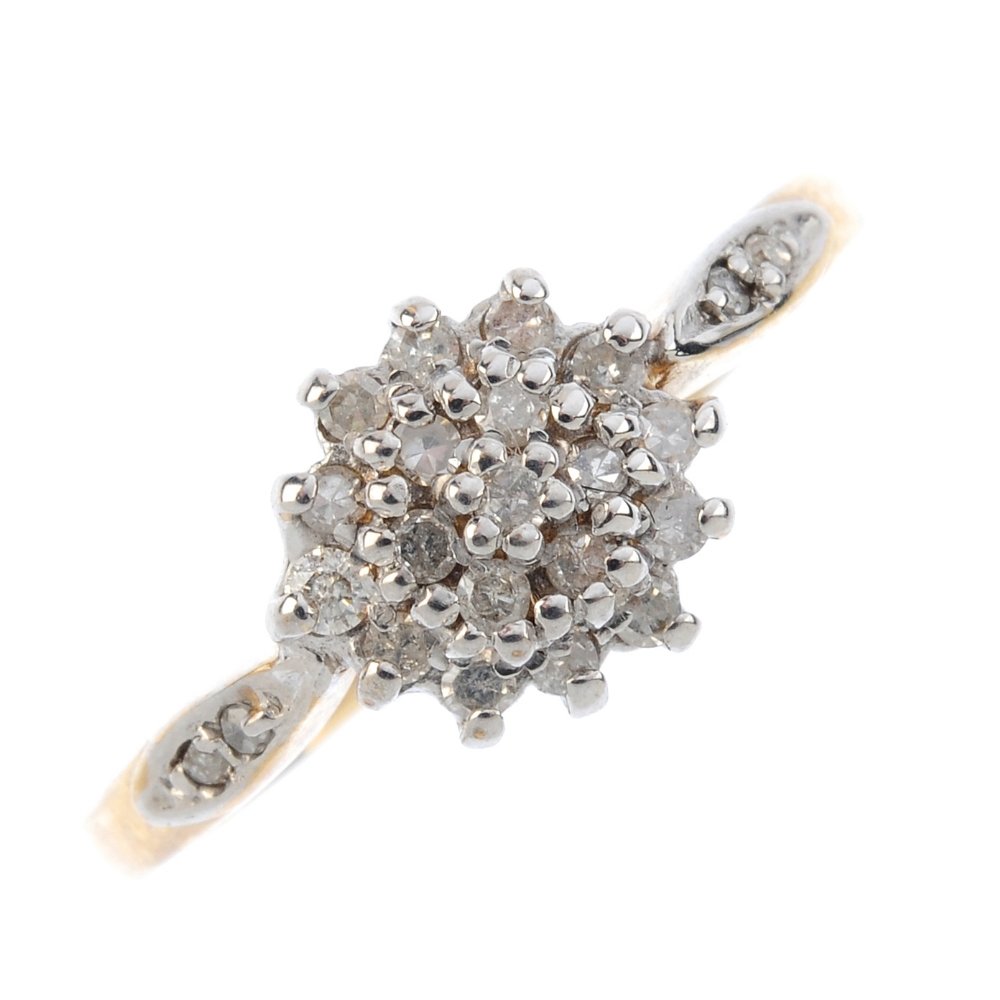 A 9ct gold diamond cluster ring. The single-cut