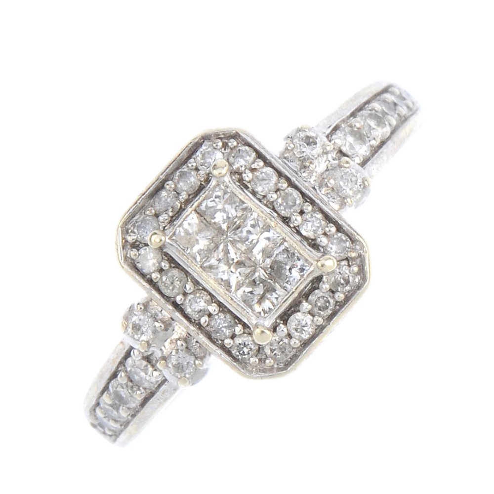 A 9ct gold diamond cluster ring. The square-shape