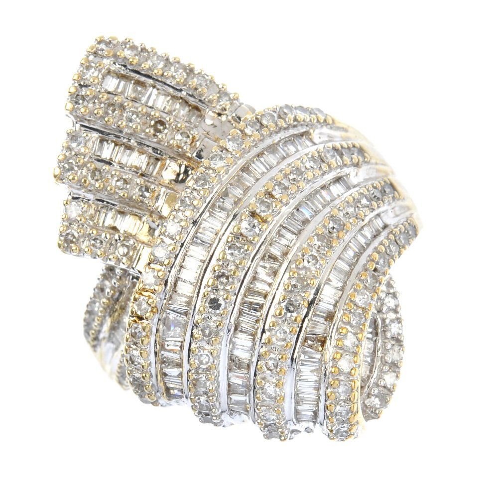 A 9ct gold diamond crossover panel ring.