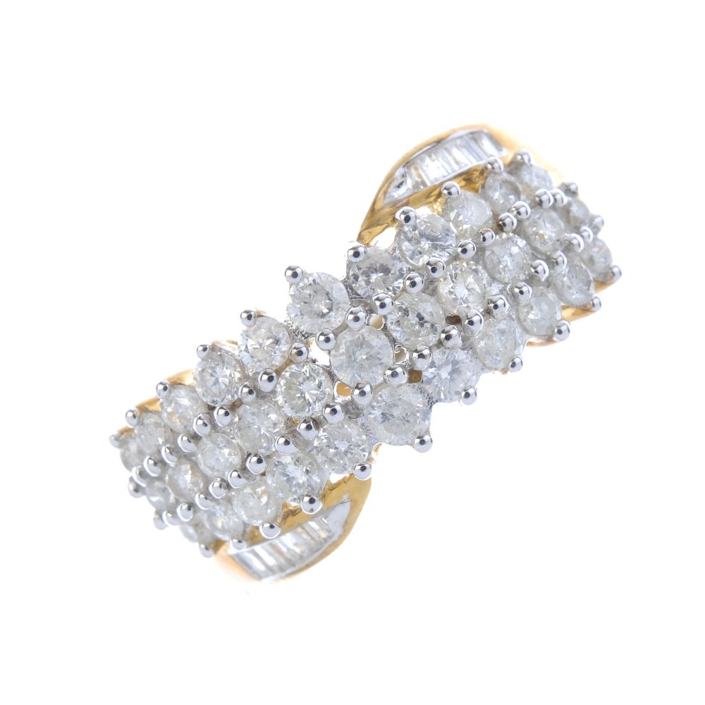 ROUND CUT DIAMOND CLUSTER CRISSCROSS BAND RING