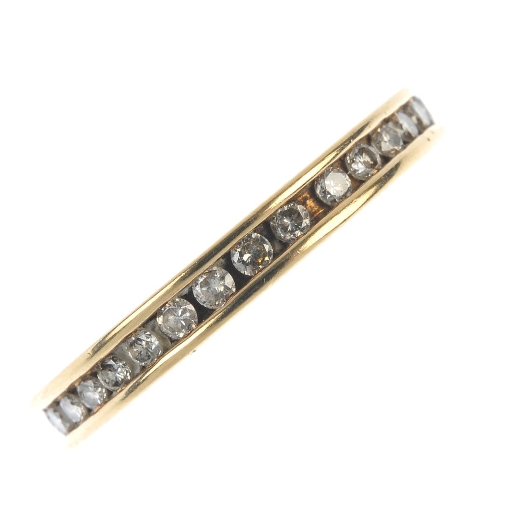 SoldA diamond full-circle eternity ring. Designed as aA diamond full-circle eternity ring. Designed as a brilliant-cut diamond line. Estimated total diamond weight 0.40ct. Ring size J 1/2. Weight 1.5gms. Overall condition fair to good. Some surface scratSee Sold Price