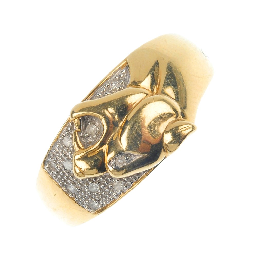 Elegant 18k Yellow Gold Panther Ring with Diamond and Sapphire