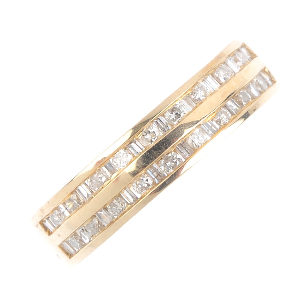 A 9ct gold diamond ring. Designed as two alternating