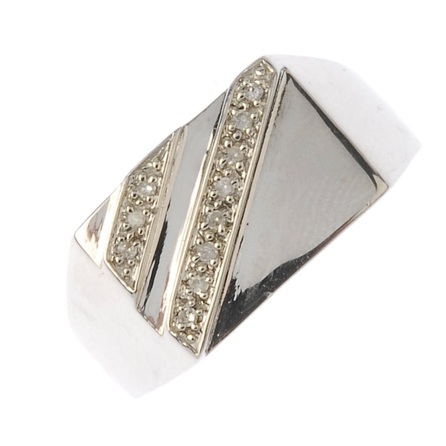 A 9ct Gold Diamond Signet Ring. The Rectangular Shape
