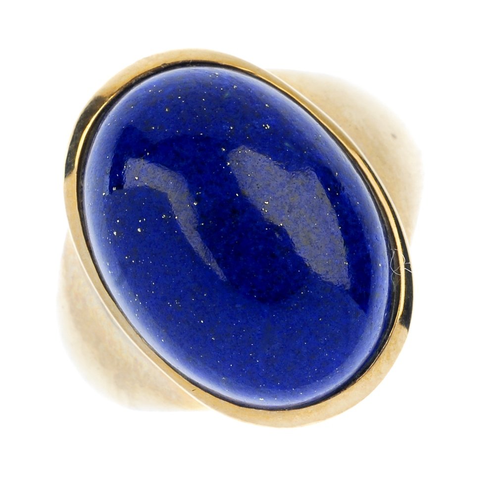 A 9ct gold dyed lapis lazuli single-stone ring.