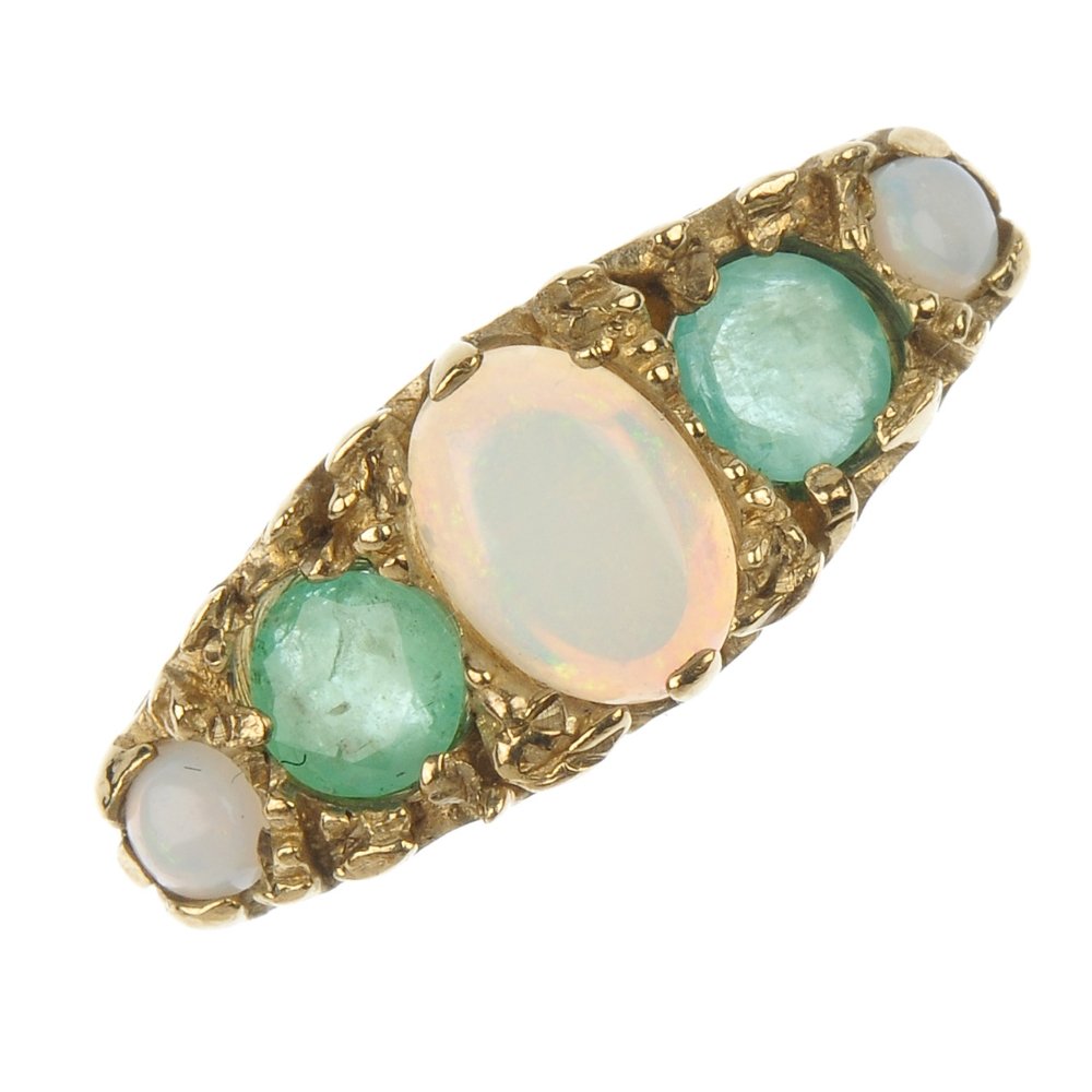 A 9ct gold emerald and opal five-stone ring.
